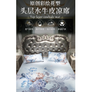 彩绘牛皮席头层水牛皮凉席1.5米可折叠真皮软席子1.8m床上三件套