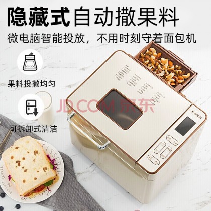 首页 > 家居厨电 > 东菱Donlim 面包机 全自动 和面机 家用 揉面机 可预约智能投撒果料烤面包机DL-TM018
